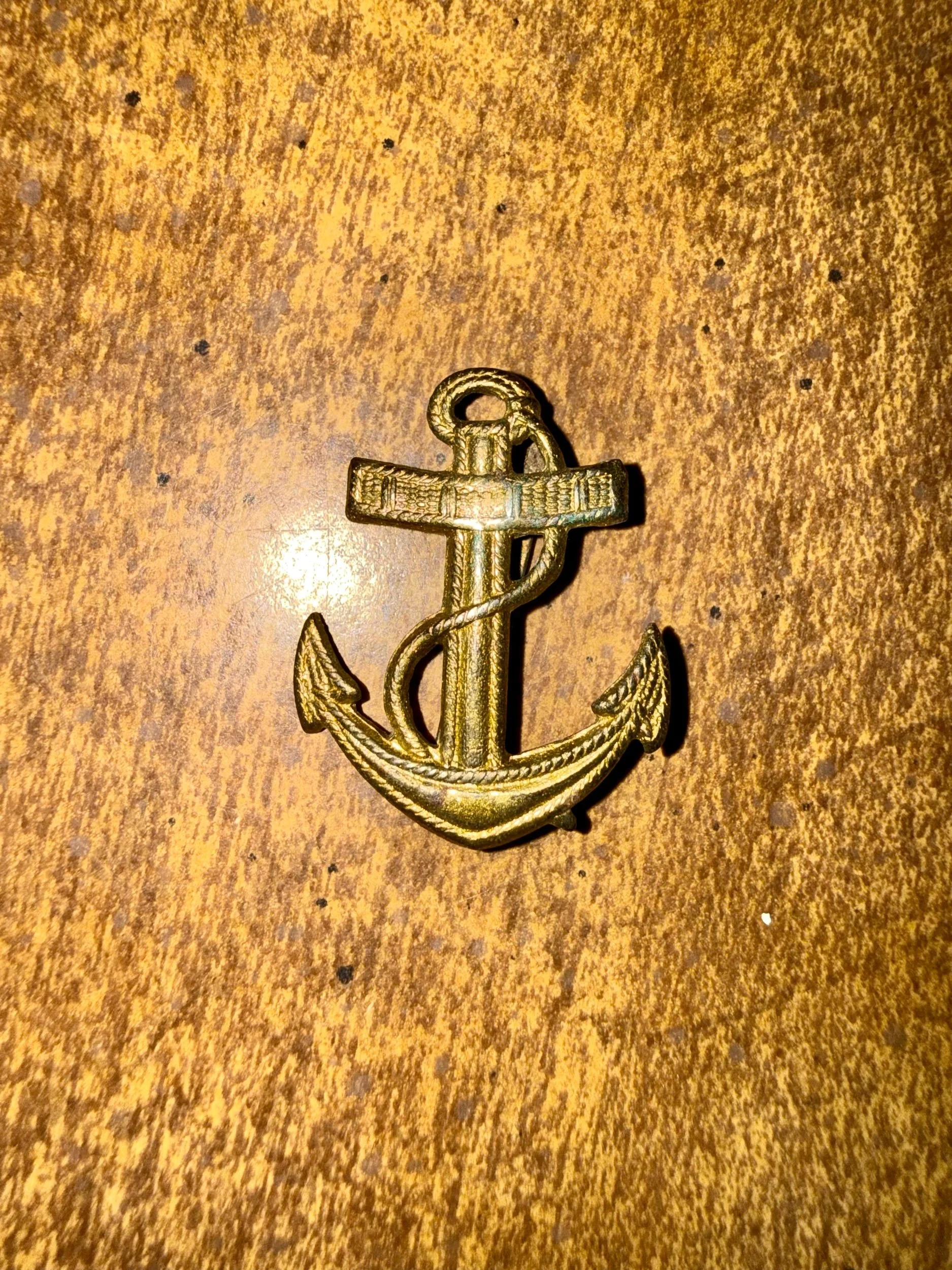 Original Boatsmen shoulder strap badge from World War II. This piece is in nice condition, retaining most of its original gold gilt, which displays very well. A solid example for collectors of WWII militaria.