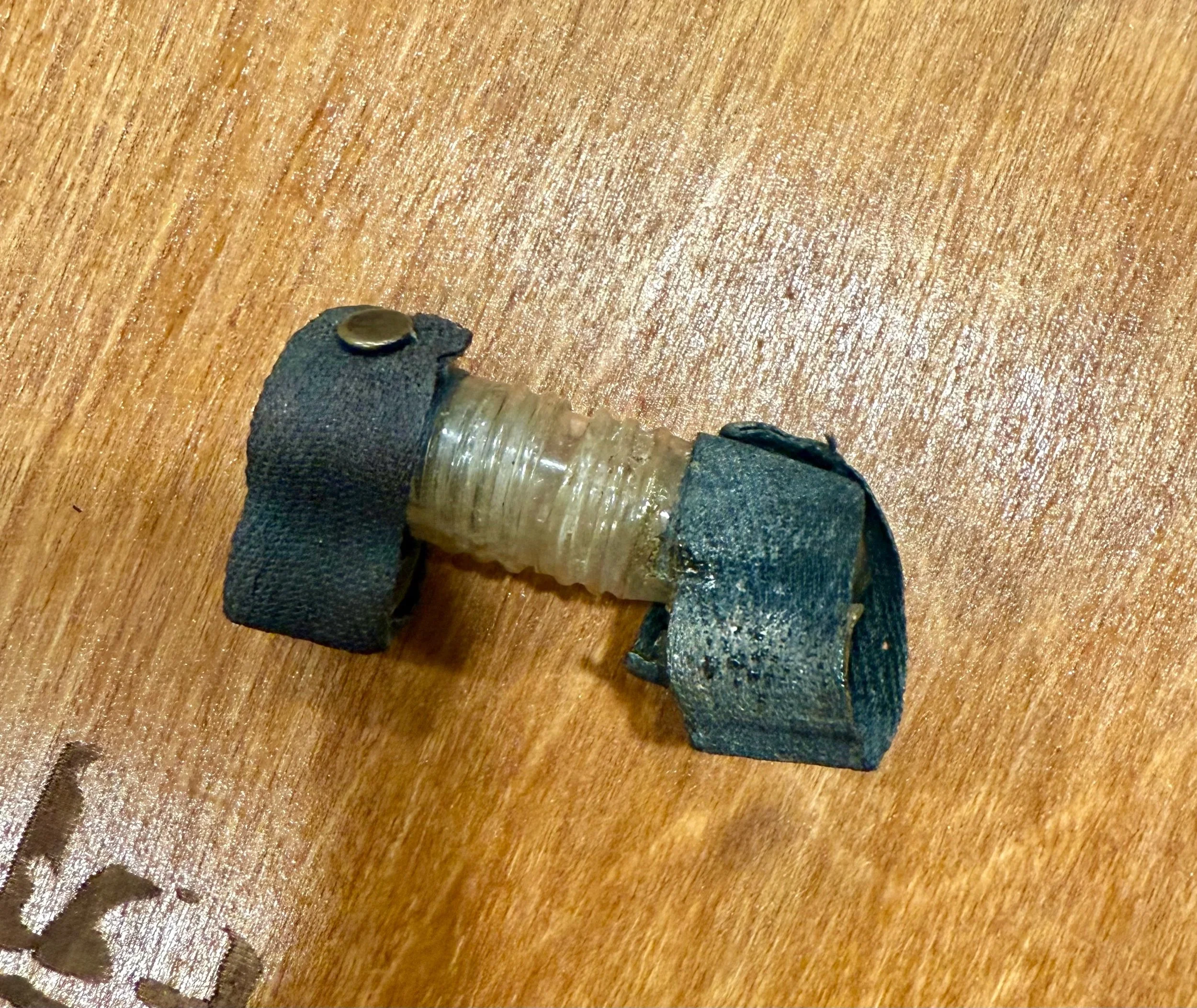 This example features two leg clamps, with one clamp broken, reflecting age and service use. It retains both original straps and separates easily for access, yet fits together firmly without looseness. Overall, it shows honest wear appropriate to a wartime artifact.